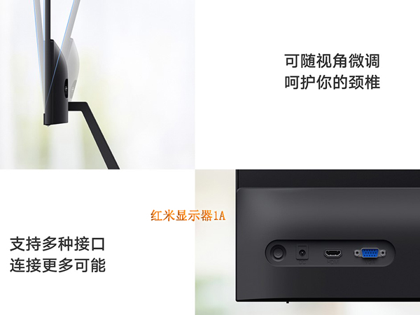 2、接口不同,Redmi显示器1A 23.8英寸带 VGA接口,小米显示器 23.8英寸与小米显示器1A 23.8英寸没有;