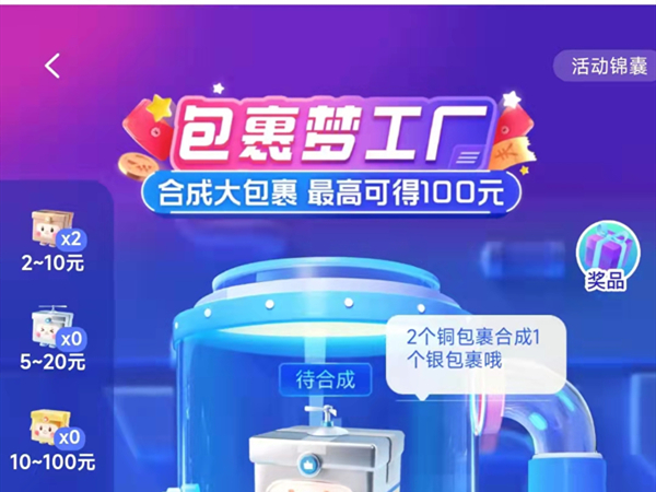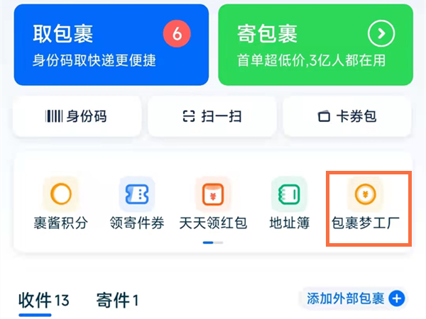 1、打开菜鸟裹裹app,在首页点击包裹梦工厂,浏览主会场商品流。
