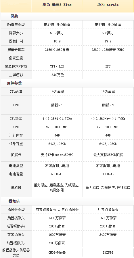您所在的位置:智能资讯>对比>华为畅享8plus和华为nova3e哪个好