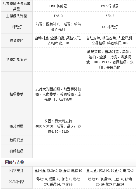 首先我们来看一下两个手机各项参数的对比图: