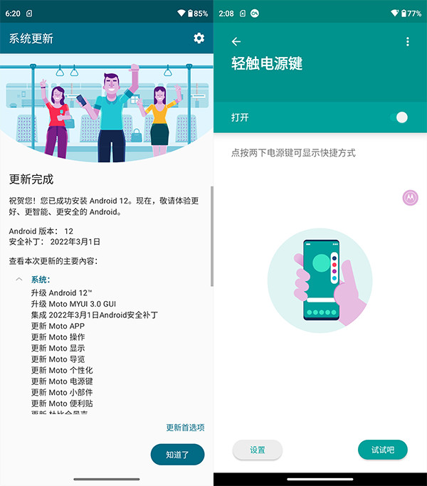 最近,moto S30系列获推最新版的MYUI 3.0,底层为Android 12。除了更流畅的系统体验之外,新UI在外观设计上依旧坚持简约轻快的风格、图标设计直观明了,而在功能上则是以实用和人性化为核心,日常使用频率很高。