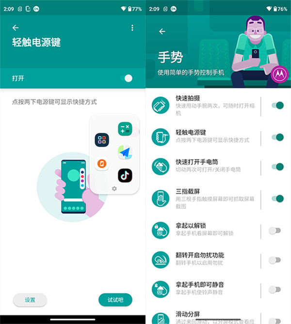 除此以外,moto特色的“一键触达”功能更是深受好评,轻轻按下就能瞬间触发指定功能,比如设定为扫码、导航等等,还可以一键启动录音机、录屏,或者是打开指定的APP,用起来非常方便。