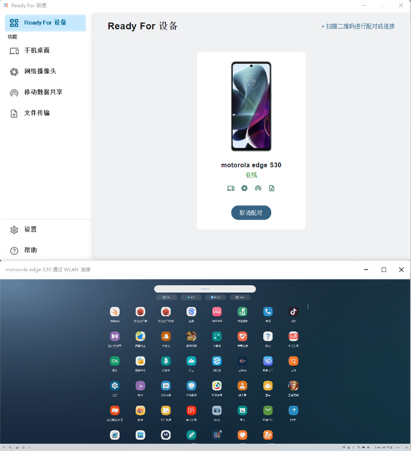 在商务方面摩托罗拉从来不会让人失望。 moto S30冠军版的Ready For 3.0能够让手机快速变身为桌面电脑,提供有线和无线模式,支持任何能以Miracast接收的显示器和设备,并且能够以4K高清的格式输出。通过手机与PC的联动,让办公更加高效。