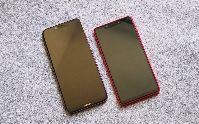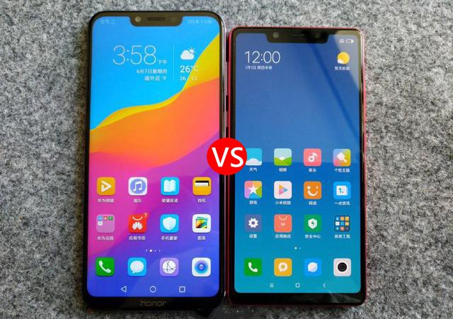 从正面整体来看,由于荣耀Play屏幕更大,因此明显比小米8 SE尺寸要大一些。另外,荣耀Play边角偏向圆润,而小米8 SE则偏向硬朗一些,此外荣耀Play刘海宽度相对窄一些,并且底部有荣耀Logo,而小米8 SE刘海略宽一些,底部比较简洁,没有Logo。