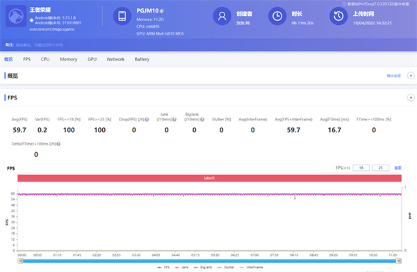 《王者荣耀》游戏目前暂不支持90帧模式,发布会后将升级支持90帧模式。在60帧模式+特效全开的设置下,PerfDog软件记录到的平均帧数为59.7帧,帧数稳定,流畅度同样不用担心。这款游戏也支持4D振感功能,在击杀场景会有振动反馈。