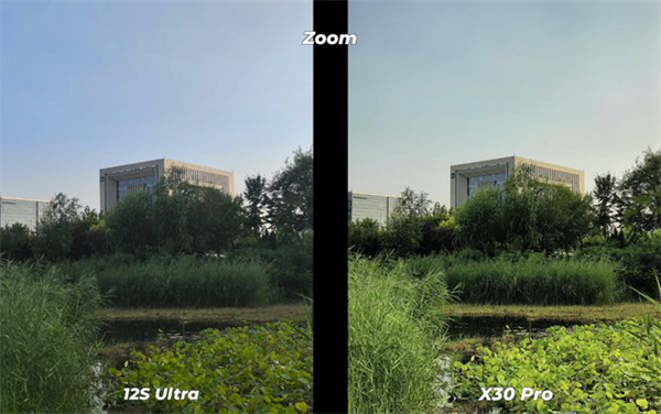 第二张主摄白天拍照对比,非逆光环境下,左边小米12S Ultra画面亮度显然更高一些,而右边Moto X30 Pro整体画面较暗,导致远处景物的细节丢失。在色彩呈现上,Moto X30 Pro也不如小米12S Ultra。