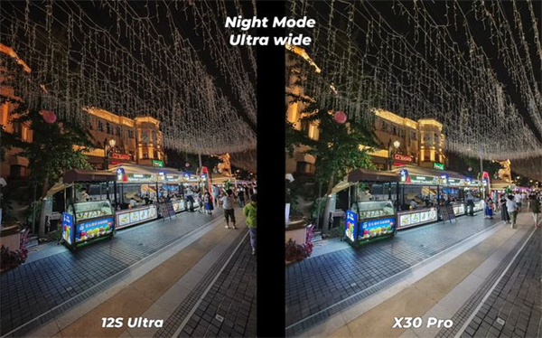 超广角夜景模式拍照对比,从画面亮度上来讲,显然Moto X30 Pro更胜一筹,但带来的坏处就是高光出现了些许过曝。反观左边小米12S Ultra,将亮度与曝光控制在了一个平衡点,画面感更棒。