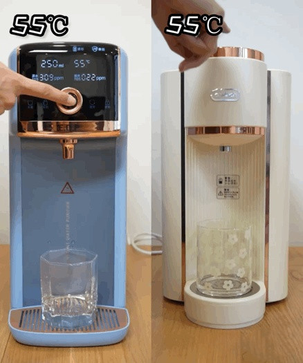 反而是在55℃的温水档下,宜盾普蓝海豚比刚才更快,而碧云泉G3 Pro却明显延迟了2秒左右才出水,反应速度慢了半拍。
