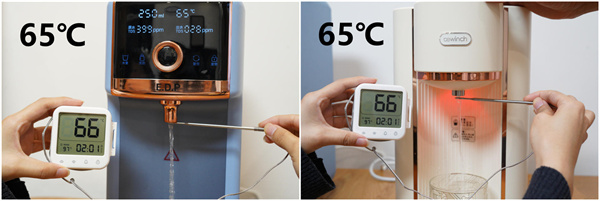 在65℃的水温下,两款净饮机的表现都不错,水温误差为1℃,符合商品页面宣传的标准。