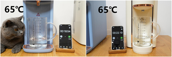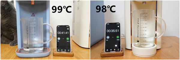 在最高水温的档位下,宜盾普蓝海豚这边就慢了一些,不过考虑到它实际的出水温度要比碧云泉G3 Pro高几度,所以加热时间稍有延长也可以理解。