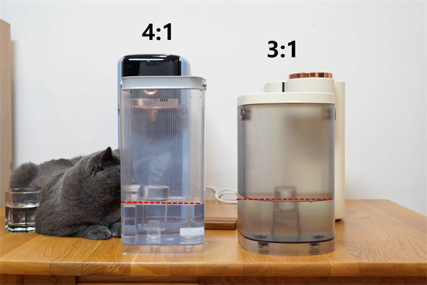 取水档位方面,G3 Pro的水量档位为5档,水温档位为7档,宜盾普的水量档是4档,档位间距较大,大小水杯都能用,相较碧云泉每30ml一个档位更加合理。