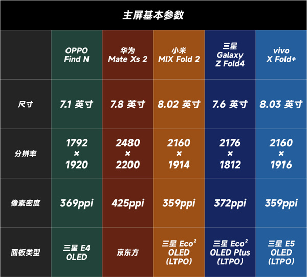 您所在的位置:智能资讯>对比>OPPO、vivo、 华为、小米和三星折叠屏屏幕对比