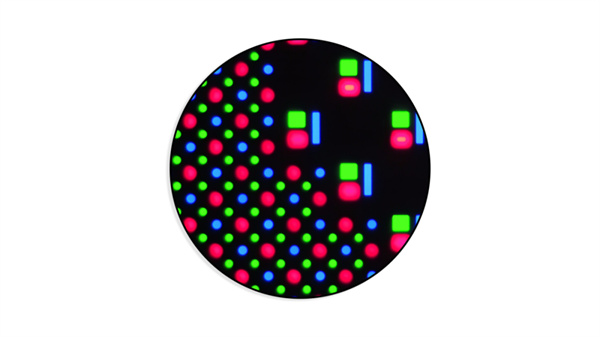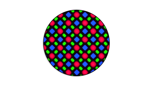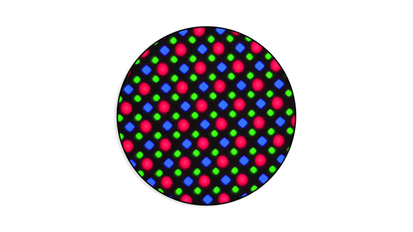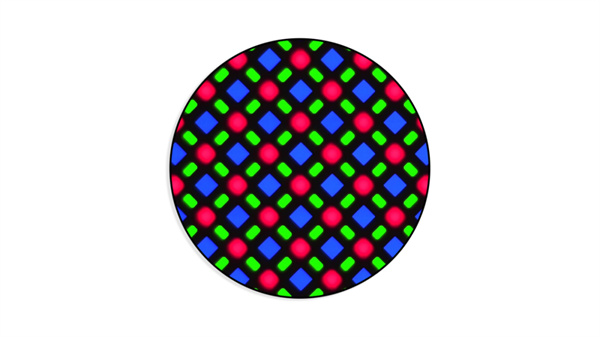 我们用显微相机拍摄了屏下摄像头与区域交汇的边缘像素,看了你就懂 —— 两个区域像素排列差别非常的大,屏下摄像头区域的单像素排列迥异,子像素不仅大,像素密度极低,直接造成区域下窗纱般的显示效果。