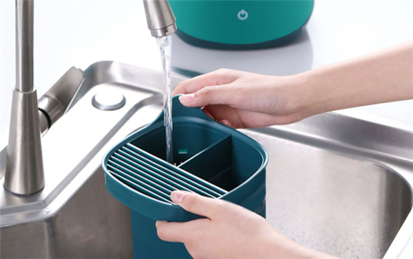 而在下方,臻米刀筷消毒机K2也贴心的设计了一个类似小抽屉的沥水盒,便于收集筷子、叉匙上流下的水渍。清理起来也很方面,只需要抽出来倒掉用抹布擦干净就好。