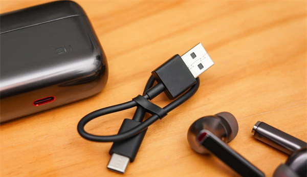充电线为 Type-C 接口黑色短线,可满足日常充电需求。