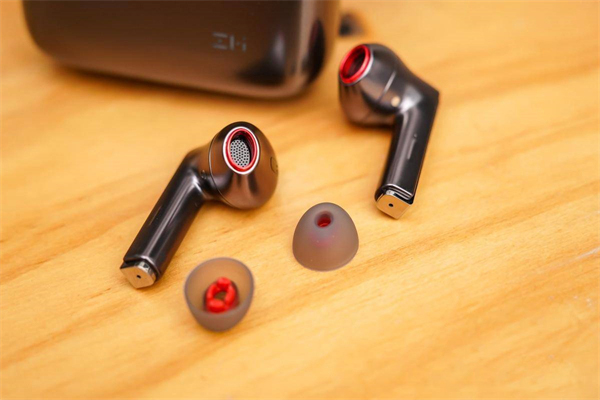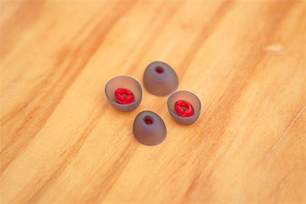 耳机不装耳帽的时候就是一副半入耳式耳机的模样,出音口同样有红圈,与上述几处红色装饰共同在外观上起到点缀作用,让产品更具特点,提升外观辨识度。