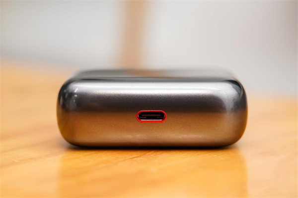 底部是 Type-C 充电接口,有一圈红色作装饰。