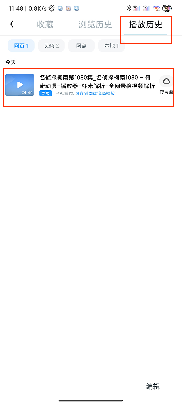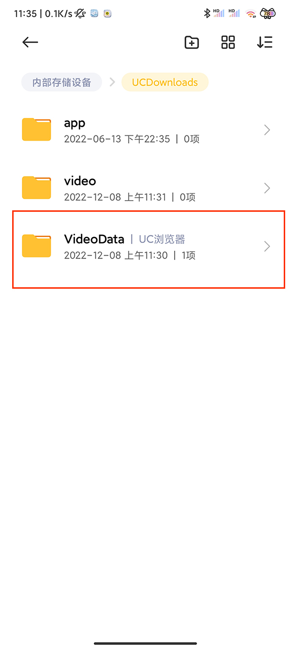 3、进入即可看到uc浏览器下载后没有删除源文件的视频。