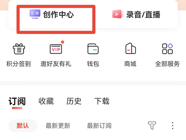 1、打开喜马拉雅app,在我的界面点击创作中心。