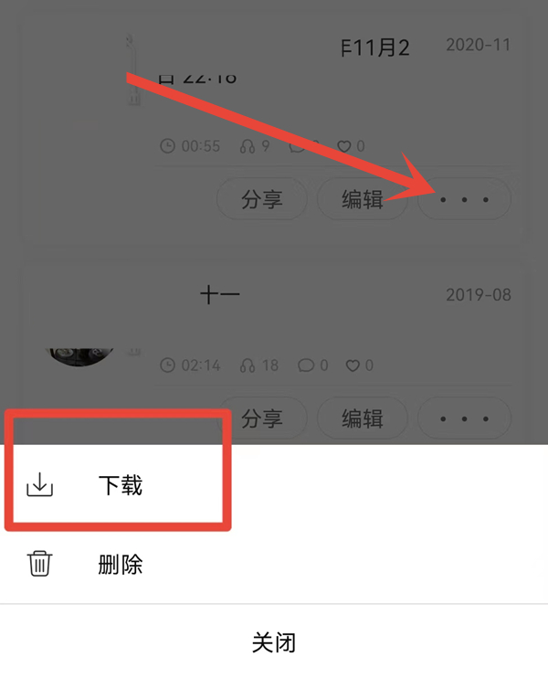 3、选择需要保存的录音,点击三个点,点击下载即可。
