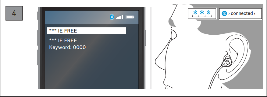 4.在所发现的蓝牙设备中,选择“xxx IE FREE”,必要时请输入默认PIN码“0000”。