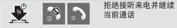 2.长按1秒多功能键,可以拒绝接听来电,还可以拒绝接听来电并继续当前通话。