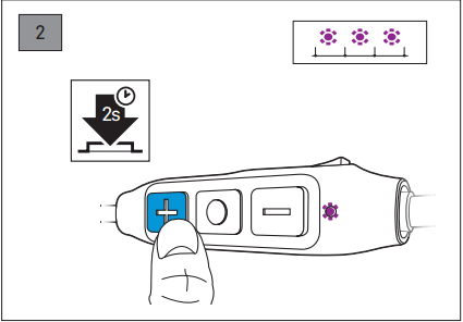 2.长按住“+”号键2秒种,此时LED灯闪烁紫色灯三次。耳机将与所有已配对的设备永久性断连,清除配对记录,并立即转入配对模式。