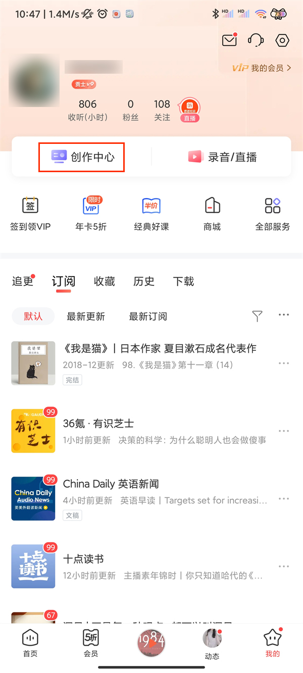 1、打开喜马拉雅,点击我的,点击喜马拉雅创作中心。