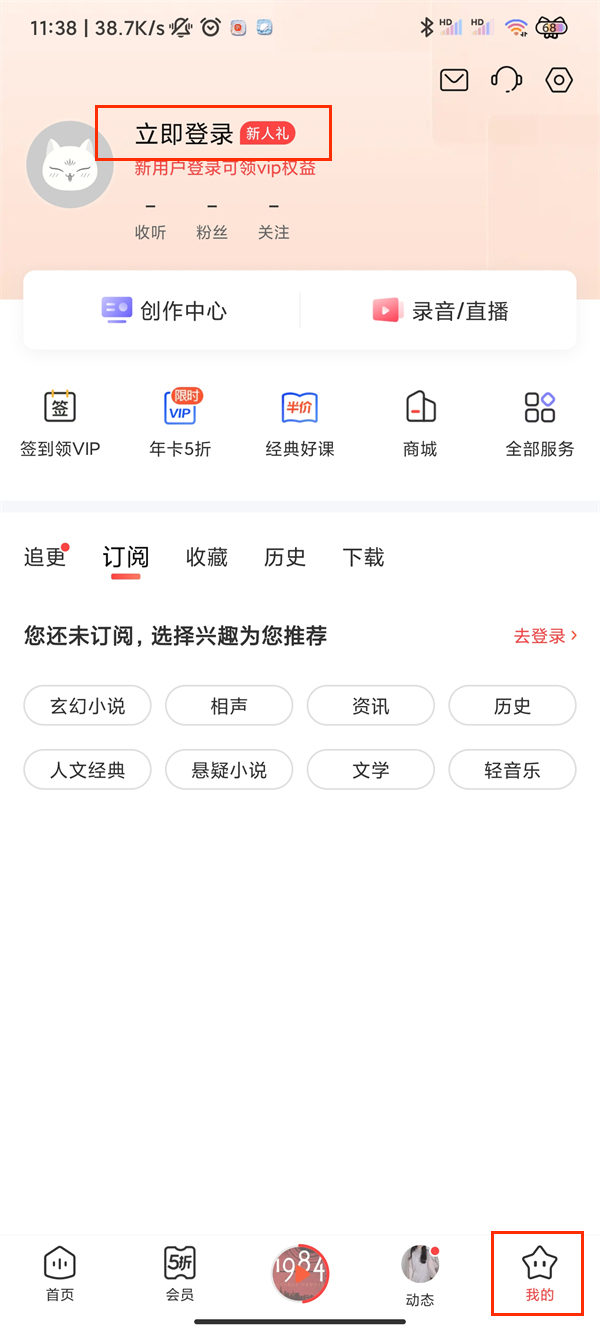 1、打开喜马拉雅,点击我的,点击立即登录。