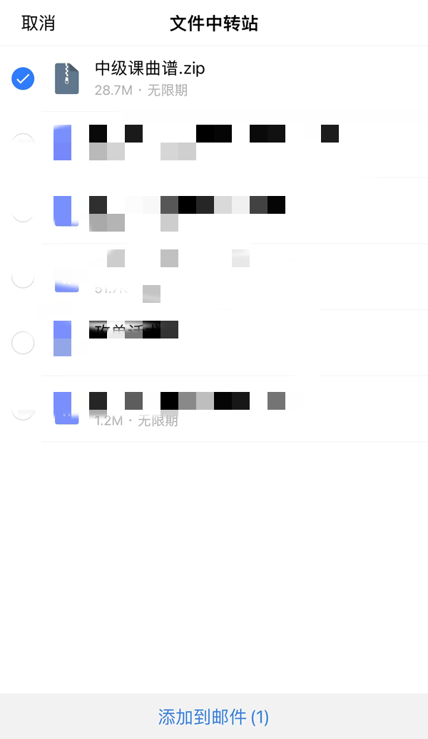 3、勾选要发送的压缩文件,点击【添加到邮件】。