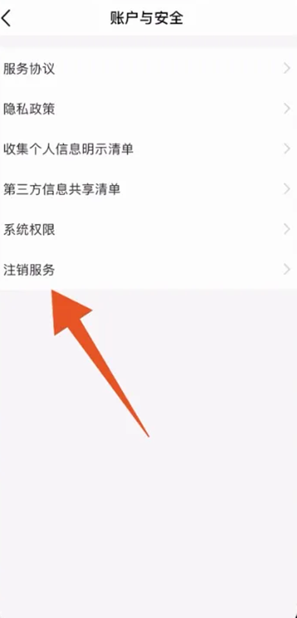 3、在账户与安全的页面中,找到注销服务这个选项,点击它。