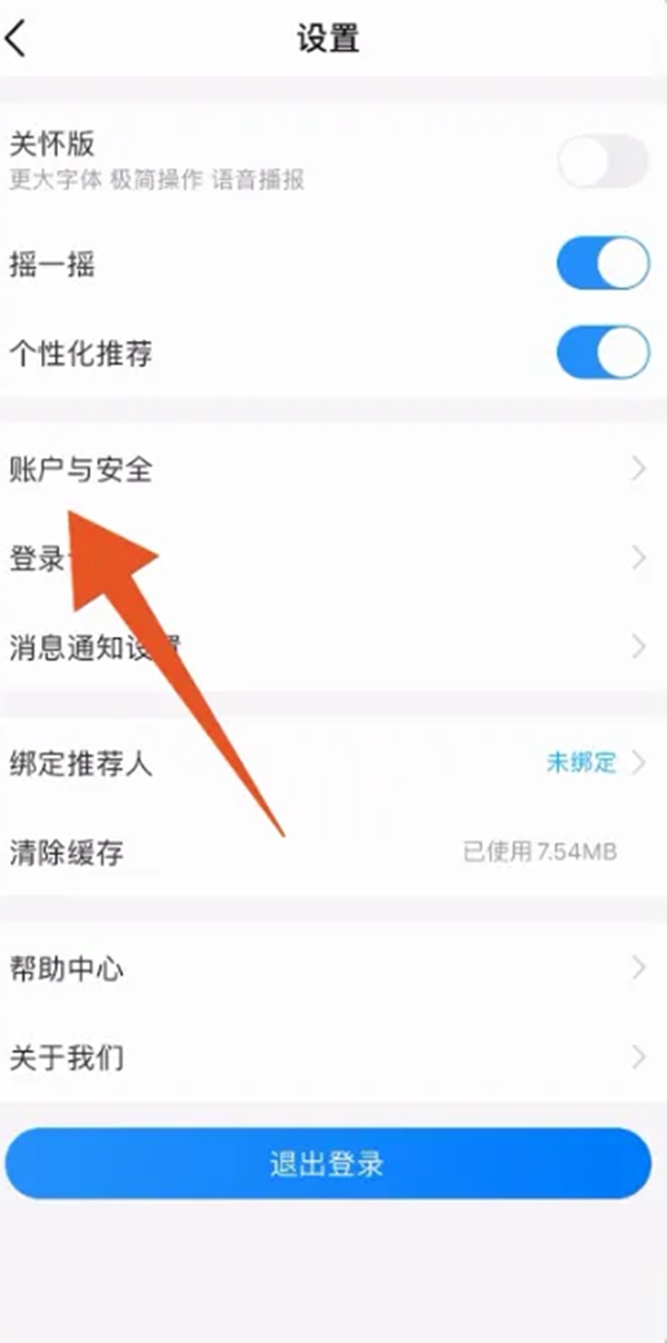 2、切换到设置的页面后,点击页面中的账户与安全,进入到新页面。