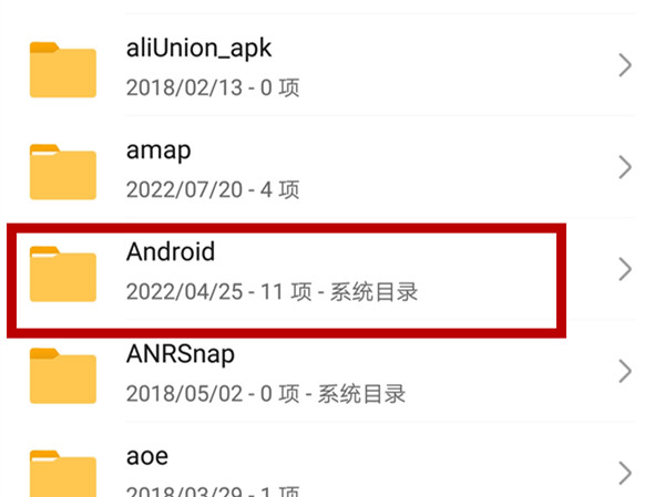 1、打开文件管理,点击文件夹Android。