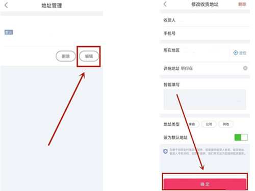 3、点击收货地址下方的编辑,修改好收货地址,点击确定即可。