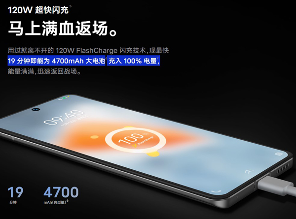 iqoo9支持120W超快闪充,配备4700mAh大电池,官方给出的时间是19分钟即能为4700mAh大电池充入100%电量。