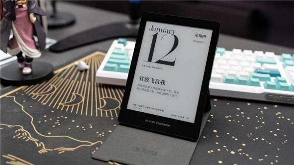 这款讯飞有声书在不使用的时候,还可以当日历来使用,与单向空间联名,待机界面支持呈现单向历,可放在桌面作为电子日历,屏幕显示还有精选作家、诗人、艺术家金句,每日宜忌指引,365天都不重样,每天都给你不一样的激励。