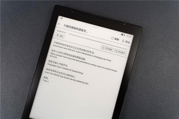 讯飞有声书搭载的6英寸的E lnk墨水屏,300PPI纸感舒适体验。整机采用了轻量化的设计,155g与6.4miri2的轻巧身材让你能够轻松装入口袋或包包。既能舒适的拿在手中阅读,亦可以合上皮套听它静静朗读。
