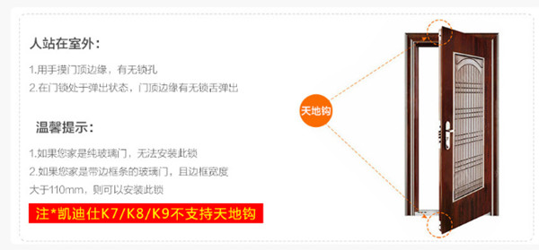 凯迪仕公司新推出的凯迪仕K9指纹锁正在各大商城火热销售中。但是您知道本次凯迪仕K9支持天地钩吗?下面就让小编带您去看看吧!