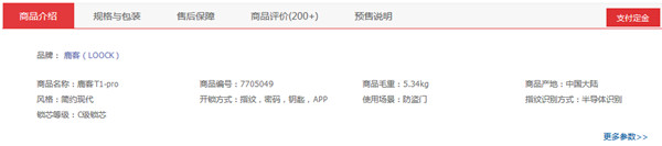 我们可以先看看关于这款锁的商品介绍(查看该商品更多信息请点击→“商品介绍”):