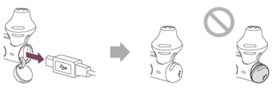 3.充电完成后,断开Micro-USB连接线的连接,然后紧紧关闭Micro-USB端口护盖,以防水或灰尘进入耳机。