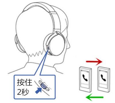 按按钮约2秒钟可在耳机和智能手机或移动电话之间切换通话设备。