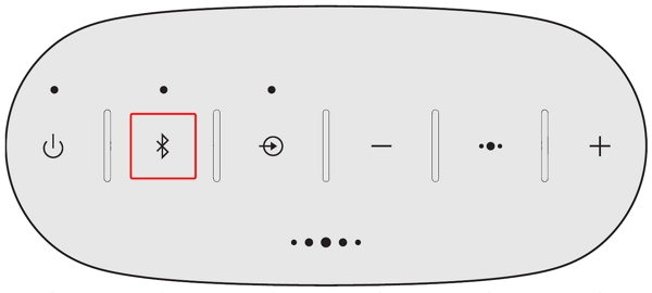 2、在 SoundLink 扬声器上,按住 Bluetooth(蓝牙) 按钮,直到蓝牙指示灯开始缓慢闪烁蓝光。