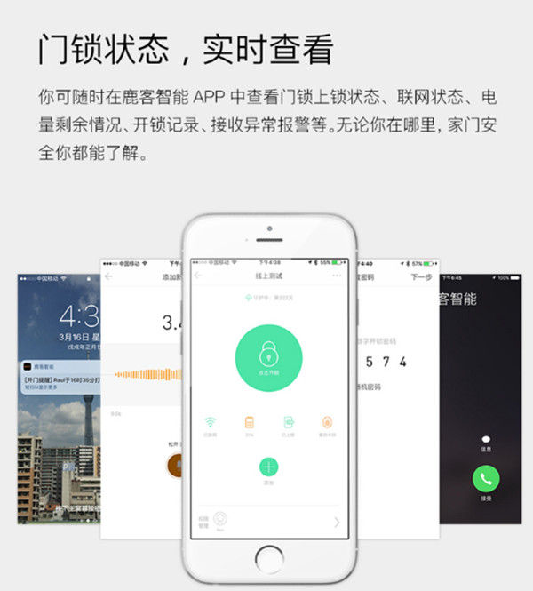 3.两款锁都具有非常丰富的APP功能,家人到家提醒、出入记录、查看房门是否上锁,远程报警功能,最重要的是两款锁都能通过智能网关连入米家APP,和小米的其他智能产品互动。但是鹿客指纹锁还有远程下发一次性密码、蓝牙密码等功能。