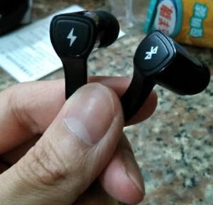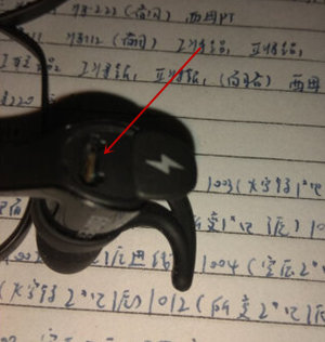 耳机的充电接口同样是位于耳塞上的,在右侧耳塞的背面,有一个闪电的标志印在耳塞背盖上,充电接口就位于标志下方。