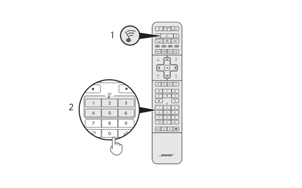3. 播放音乐时,按住遥控器上的一个预设 (1–6) 直到条形音箱发出一声提示音。