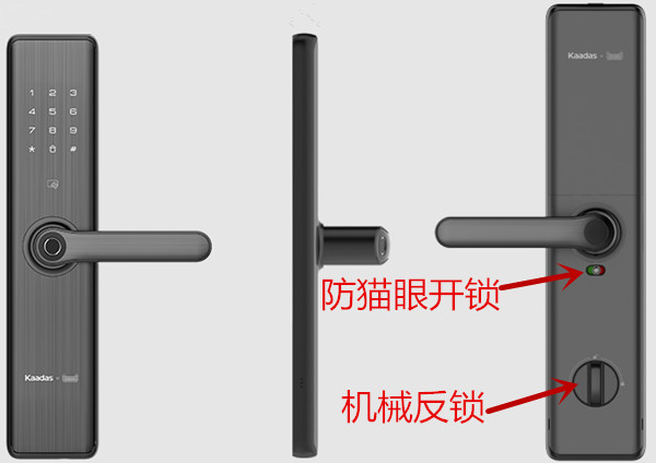 但是凯迪仕K9采用的是close键进行电子反锁,而TK2可以通过旋钮对指纹锁进行机械反锁。电子反锁使用更方便,看起来也更酷,但是给不到人安全感。而机械反锁虽然看起来笨笨的,但是却能让人安心,毕竟是自己亲自用手反锁的,看得见摸得着,这可能也和人们使用机械锁的习惯有关吧。