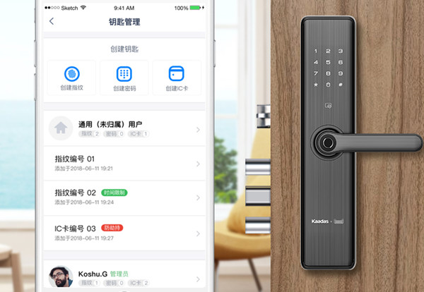 4.凯迪仕K9除了APP开锁还有蓝牙开锁,可以进行设备共享,不仅安全而且方便。[指纹锁中的设备共享是什么意思]