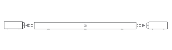 1、将两个无线环绕声音响按照左右摆好,放在音条的两边。(L:左;R:右)
