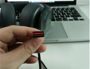 购买耳机时,包装盒内会赠送一根正反都可以接 USB 插孔的 USB 充电线。