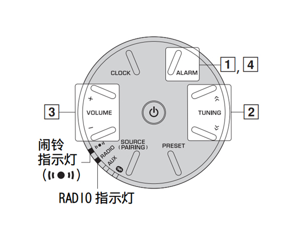 — 闹铃时间前 3 分钟广播打开,闹铃时间到时,提示音开始鸣响。